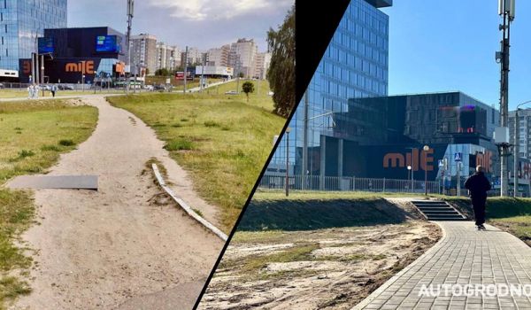 В Гродно продолжают улучшать инфраструктуру. На проспекте Янки Купалы появилась тропинка: люди таким образом срезали путь к торговому центру.