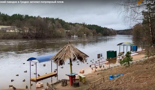 Пляж в Гродно стал местной достопримечательностью после того, как до некоторых грибков и кабинок для переодевания можно добраться только на лодке.