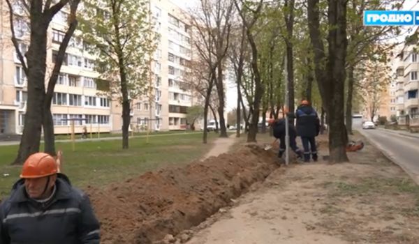 Во дворе дома по адресу Поповича, 13 устанавливают новые фонари.