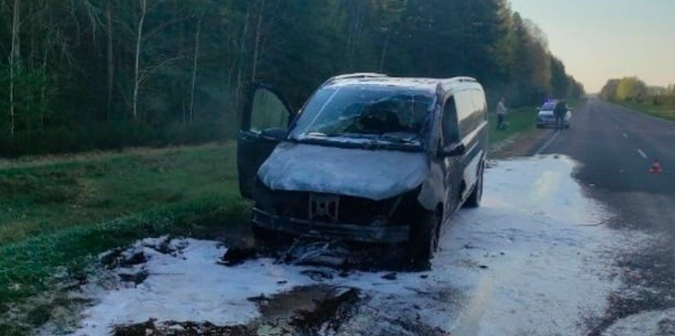 В понедельник, 24 апреля, около половины восьмого утра, на автодороге Р-135 "Ивье-Липнишки-Радунь" прямо на ходу произошло возгорание автомобиля "Mercedes".
