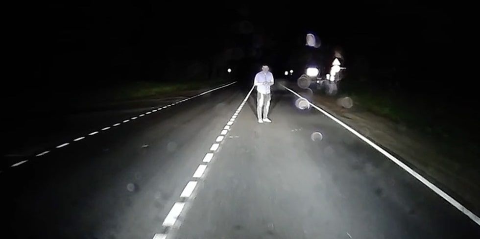 А теперь видео не для слабонервных. Благо в машине был видеорегистратор, который и запечатлел появление "призрака" на дороге.