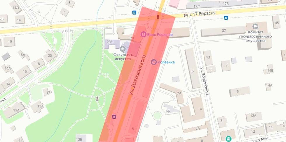 – 22 августа с 21:00 до 04.00 часов 23 августа по ул. Дзержинского (от ул. 1 Мая до ул. 17 Сентября), – сообщает "Гродно Плюс".