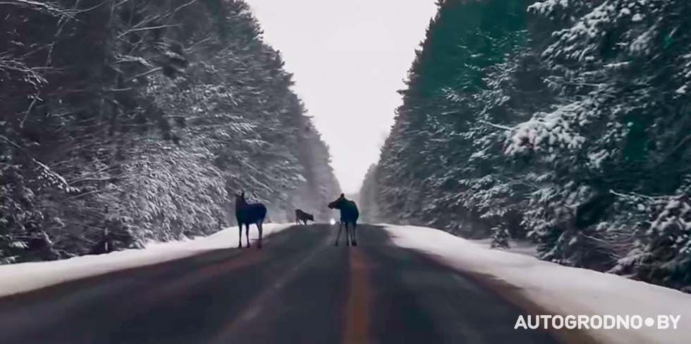 Анастасия из Минска съездила в Гродненскую область и встретила на дороге трех лосей. Девушка начала сигналить животным, ...