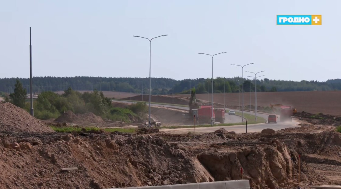 Дорога приобретает конкретные формы и очертания. Сейчас на объекте задействованы шесть экскаваторов, три бульдозера, три погрузчика и звено асфальтоукладчиков, рассказывает телеканал "Гродно Плюс".