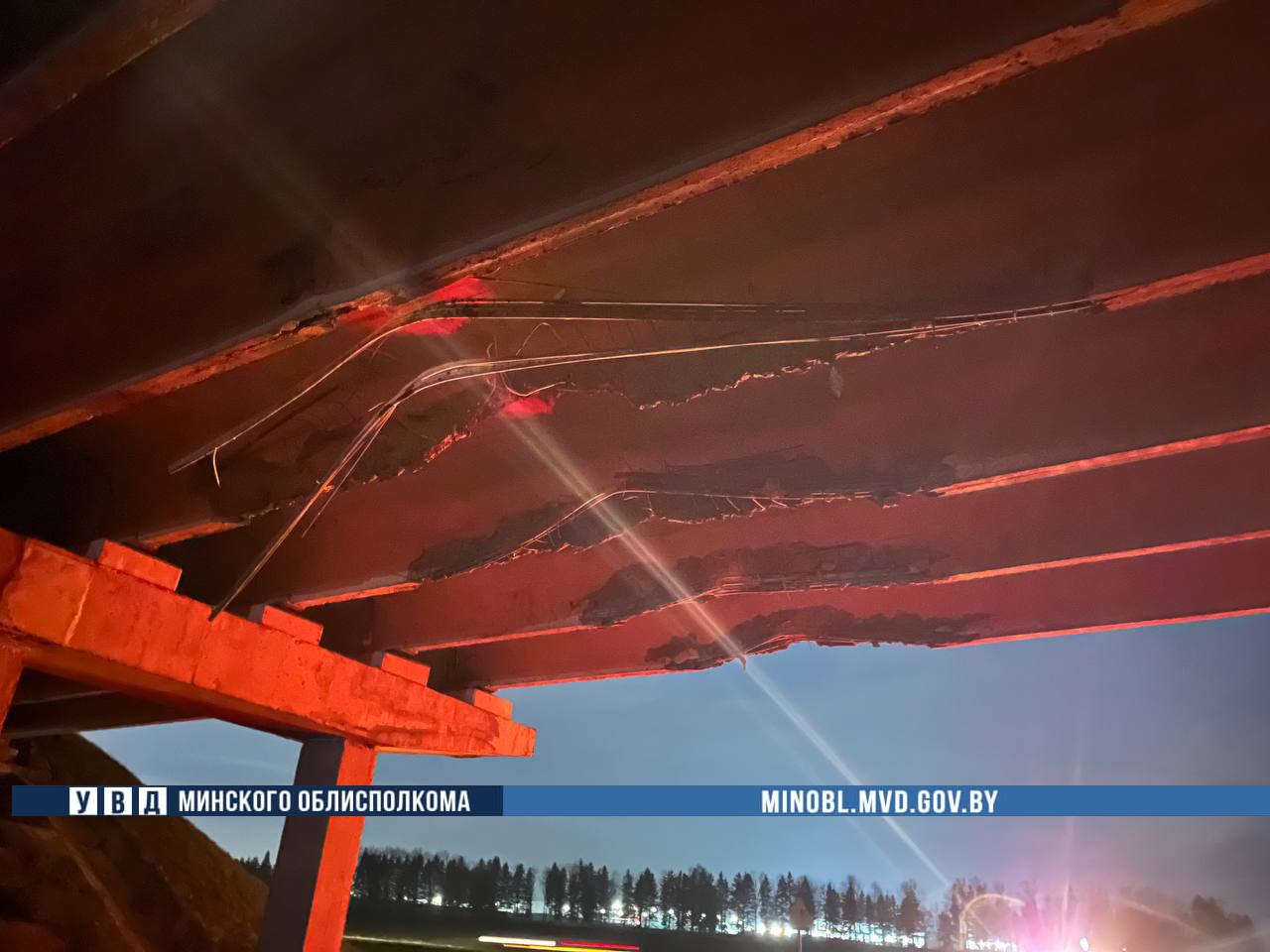 Водитель грузовика Volvo перевозил на полуприцепе экскаватор. Он не учел габариты транспорта и повредил пять балок пролетного сцепления путепрвода, сообщает Милиция Минщины.