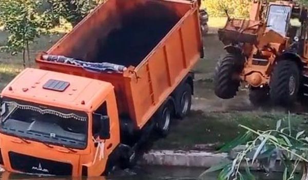 В пятницу в Минске груженый МАЗ скатился в Слепянскую водную систему. За рулем никого не было и люди не пострадали. Но вытянуть автомобиль из воды оказалось непростой задачей. Это засняли на видео.