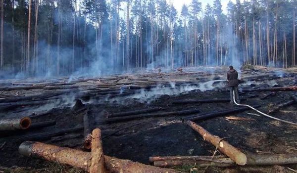 Днем 13 мая в лесном массиве вблизи деревни Бояры Слонимского района пожар уничтожил 0,40 га леса. Следователи установили, что накануне в лесном массиве 3 работника осуществляли валку леса, один из них курил и бросал окурки на землю.