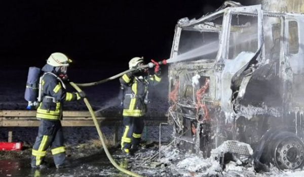 В немецкой земле Гессен на автобане А7 загорелся автопоезд, груженый почтовыми отправлениями, которым управлял 39-летний белорус.