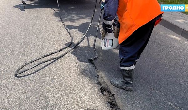 Предотвратить образование ям на ранних этапах. В Гродно заделывают трещины на асфальте.