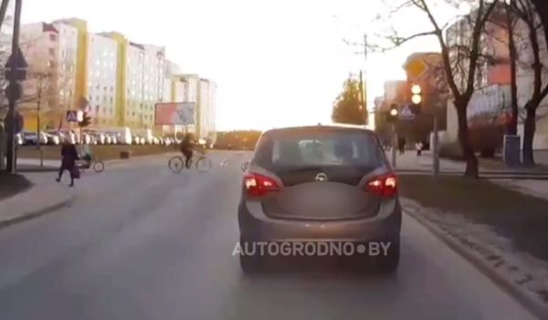 Во вторник, 27 мая, около 13:20 в Гродно, на кольцевой развязке проспекта Космонавтов, велосипедист пересекал проезжую часть дороги справа налево по ходу движения автомобиля.