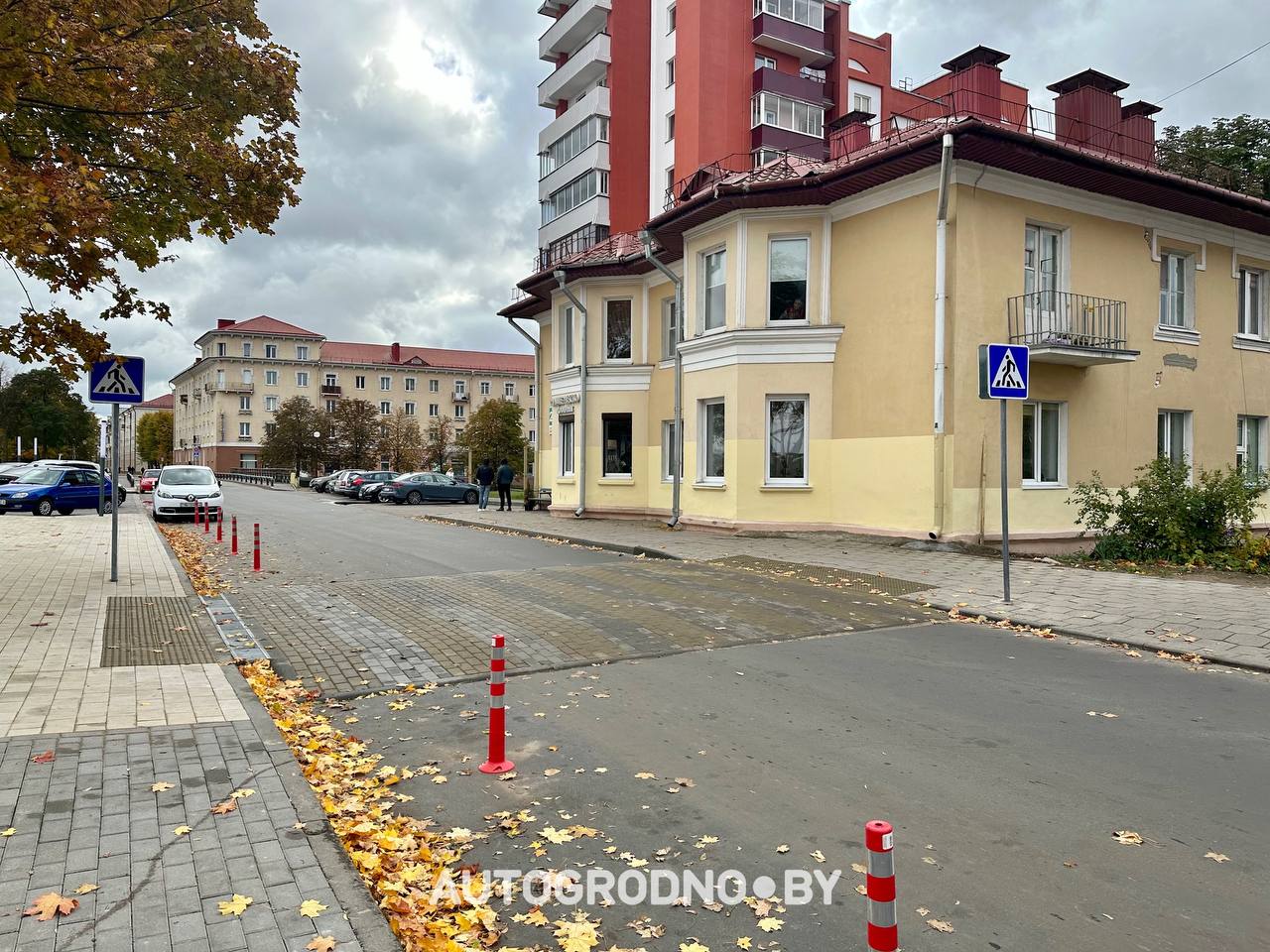 Итак, появились 2 пешеходных перехода: один подвышенный (тот, который ближе к кофейне), второй обычный, поближе к костелу.