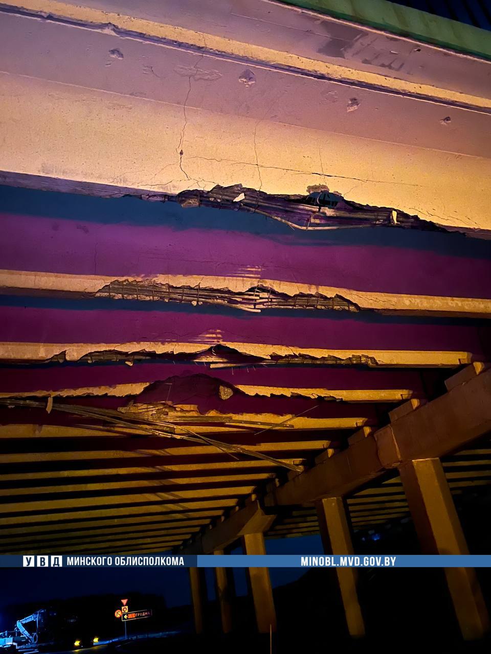 Водитель грузовика Volvo перевозил на полуприцепе экскаватор. Он не учел габариты транспорта и повредил пять балок пролетного сцепления путепрвода, сообщает Милиция Минщины.
