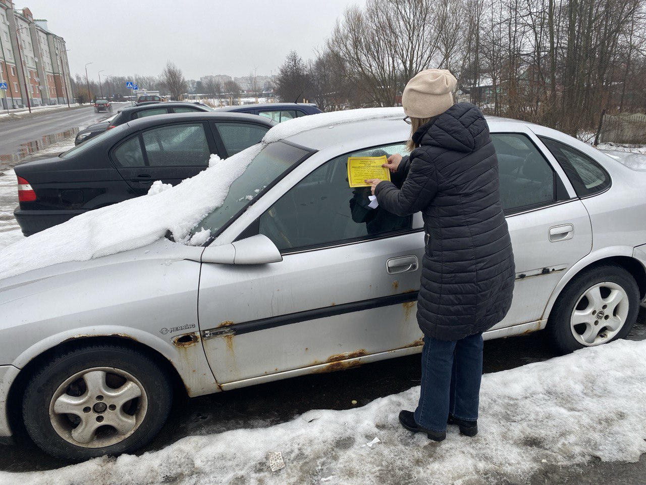 В Бресте владельцы 22 автомобилей обнаружили на стеклах желтые уведомления – это предписание убрать неэксплуатируемый транспорт.