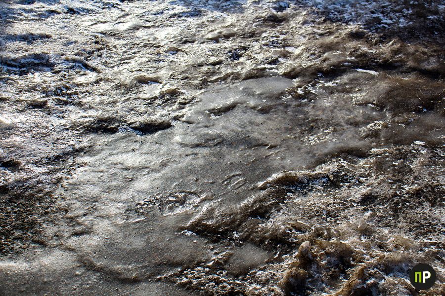 Из-за скачков температуры и образования панциря, соль, которая отлично разъедает лед, перестала работать. Поэтому приходится использовать песок, но он не так эффективен.