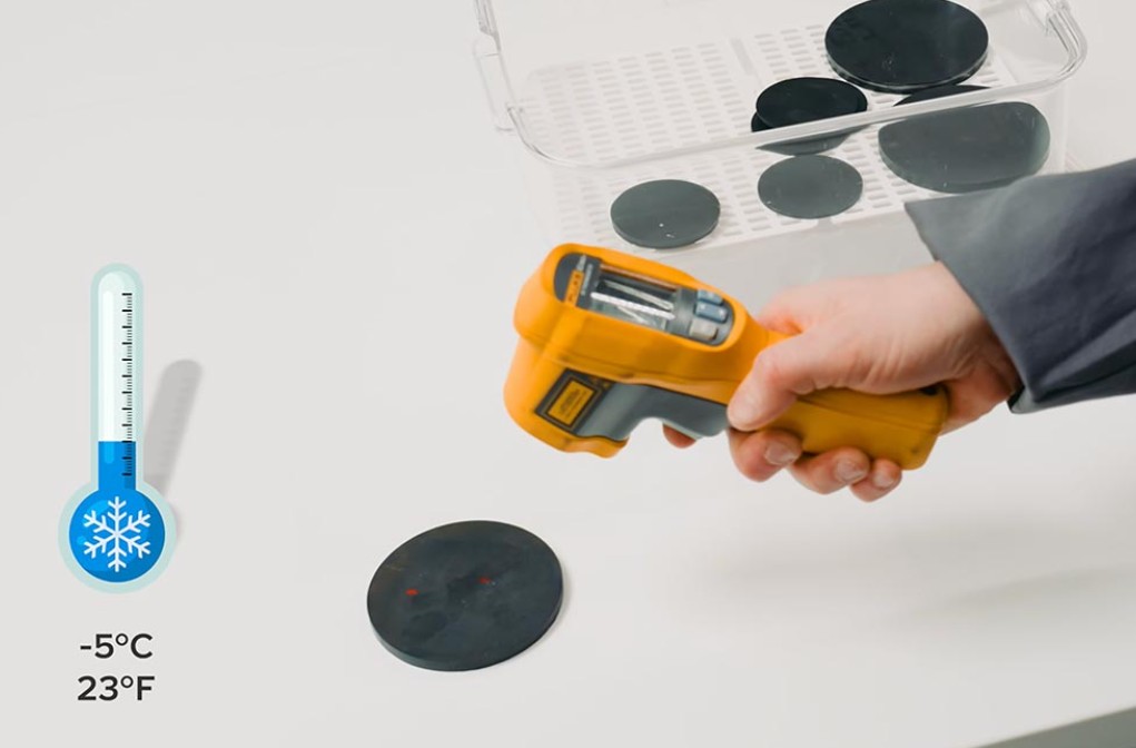 Когда материал жёсткий, основание шипа упирается в твёрдую «подушку», и шип остаётся выдвинутым. Когда слой становится мягким, шип может втягиваться внутрь протектора. При этом низкая упругость материала не выталкивает его обратно при каждом обороте колеса, поэтому шина не шумит на асфальте.