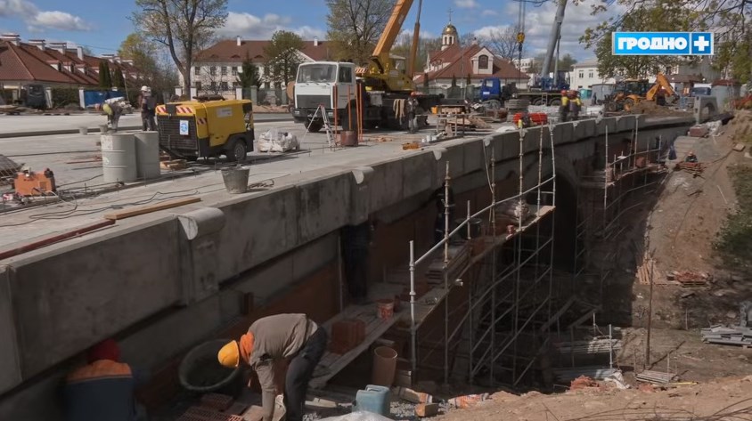 Реконструкция моста через реку Юрисдику на улице Митрополита Филарета в Гродно продолжается бурными темпами.