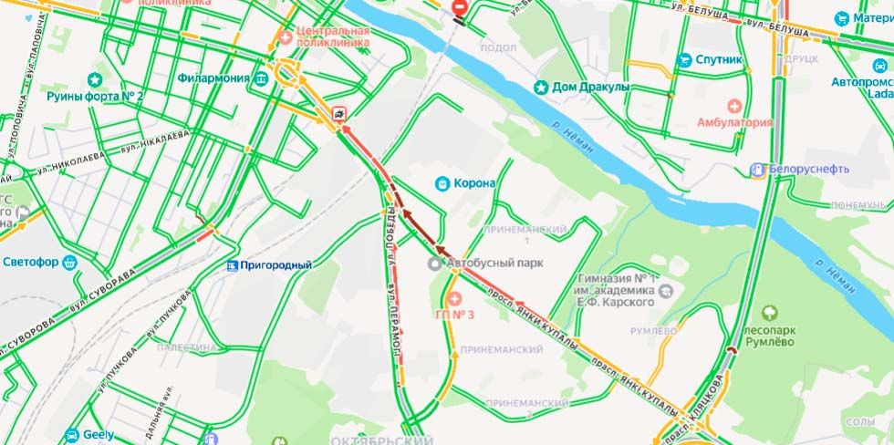 На проспекте Янки Купалы произошло дорожно-транспортное происшествие. Собрались значительные заторы.