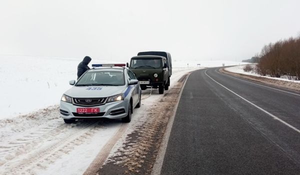 Сегодня, 13 декабря, на автодороге Р-95 в Сморгонском районе у автомобиля "УАЗ" закончился бензин.